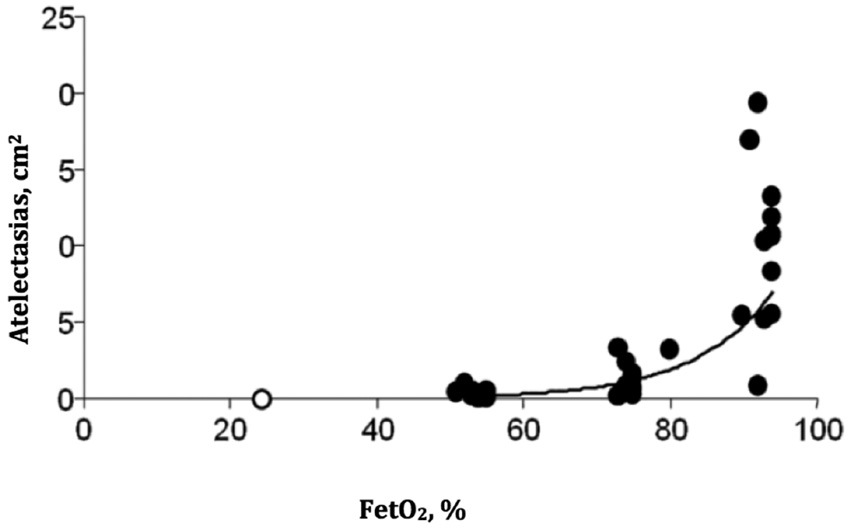 La disminución de la FiO2 durante la anestesia general disminuye las atelectasias por absorción. Durante la inducción anestésica la recomendación sigue siendo utilizar FiO2 de 1 para aumentar el tiempo de tolerancia a la apnea y dar mayor seguridad al paciente en caso de una vía aérea difícil no anticipada. Una vez asegurada la vía aérea, se recomienda reducir la FiO2. No existe consenso sobre que FiO2 utilizar durante el mantenimiento anestésico, algunos autores recomiendan no utilizar más allá de FiO2 de 0,3 a 0,4 y otros autores no encuentran ventajas en utilizar menos de 0,8. Lo recomendable es evaluar caso a caso y utilizar la menor FiO2 que se considere segura para cada paciente. Durante la extubación, al igual que en la inducción anestésica, la recomendación continúa siendo la utilización de FiO2 de 1, hasta asegurar la permeabilidad de la vía aérea y un buen patrón respiratorio.