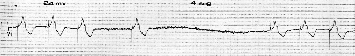 Figura 10 MP DDD: falla de captura en aurícula y ventrículo de 5 s en paciente con FA sometido a CVE.