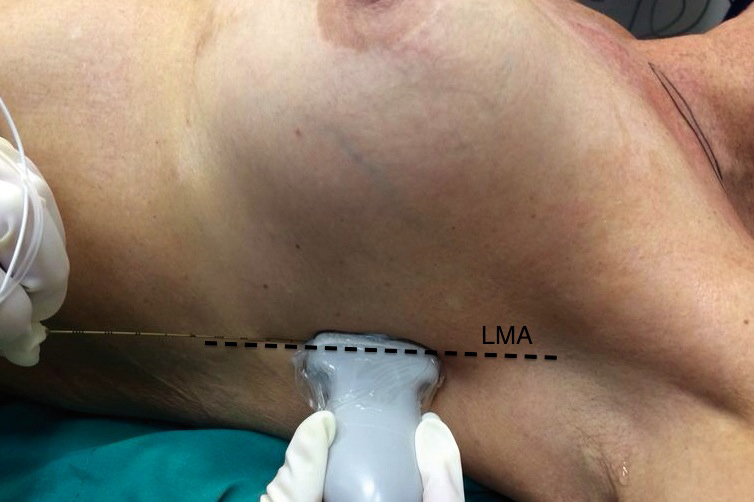 Figura 9 Ubicación de sonda para realizar bloqueo del plano serrato (SAP). LMA: línea axilar media.