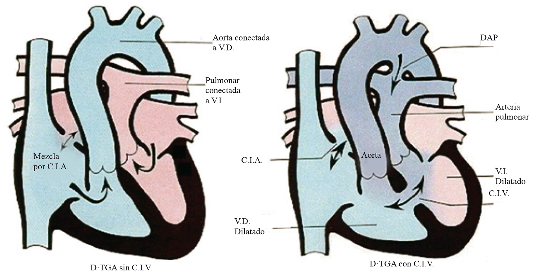 Cianosis por circulación en paralelo: D-transposición de grandes arterias (D-TGA), con o sin comunicación interventricular (CIV) (Figura 5).