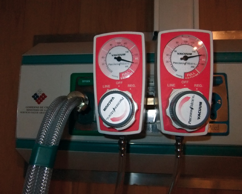 En la sala del tomógrafo se dispuso de 2 redes independientes de oxígeno central 380 kPa, 2 redes de independientes aspiración central, 2 máquinas de anestesia (Datex-Ohmeda Aestiva/5 y Drager Fabius) y 2 monitores multiparámetros (Philips, SureSigns VM6).