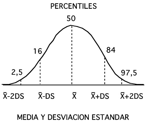 Figura 4 Correspondencia entre percentiles y desviaciones estándar medidas desde la media.