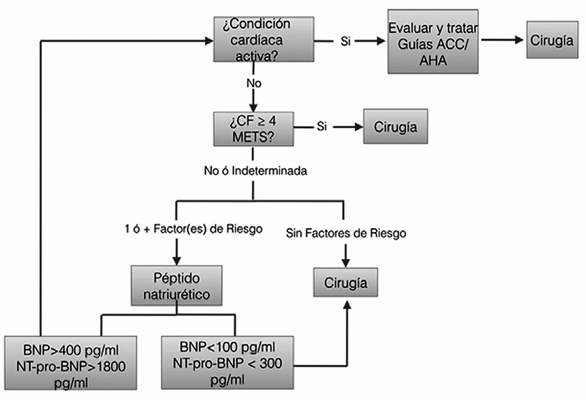 Fuente: ACC/AHA Guidelines on Perioperative Cardiovascular Evaluation and Care. JACC 2007; 50: 159-242. |