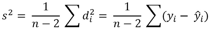 El término (n-2)s2 se obtiene como la diferencia de (YY) o suma total de los cuadrados de la variable menos la cantidad b (XY) que puede entenderse como una disminución, debida a la regresión, en la suma total de los cuadrados. Con esto (n-2)s2 será la parte de la suma de los cuadrados total que no ha sido explicada por la regresión, parte que depende de otras variables o influencias no consideradas en el modelo.
