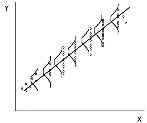 Figura 6 Los valores de Y para cada valor de X deben tener una distribución Normal y la variabilidad debe ser igual.