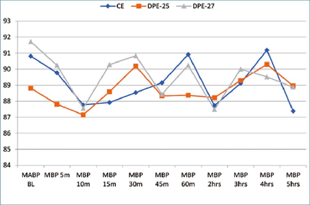 Figure 3. Mean arterial pressure (MBP) among the three groups.