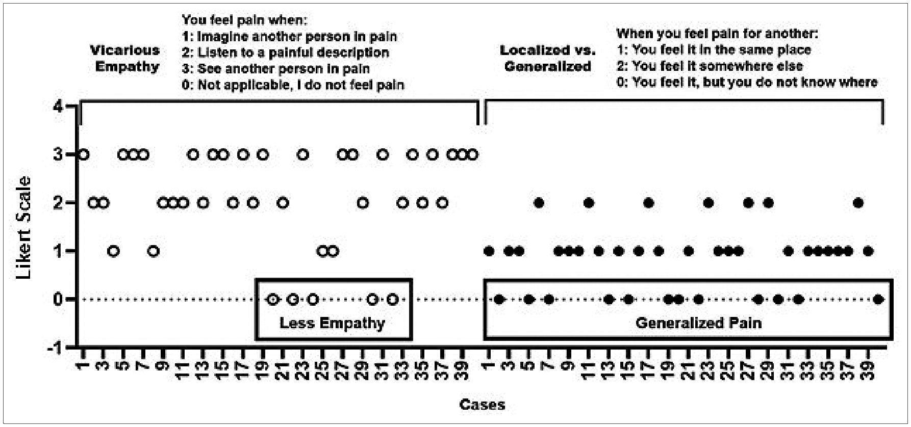 | Vicarious pain | 45.00% | 55.00% | |