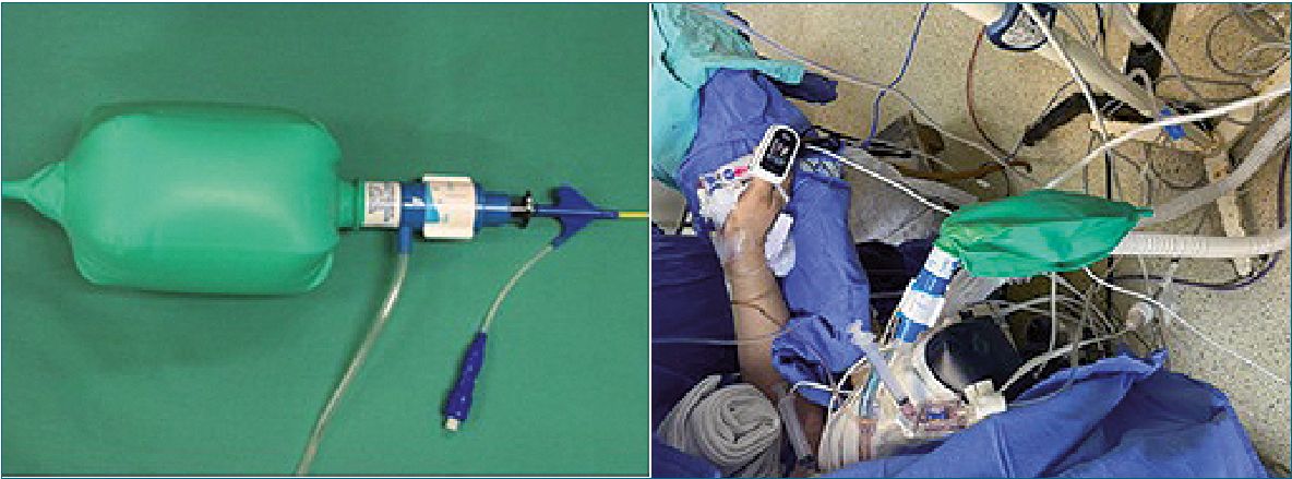 6. Retorno a la ventilación bipulmonar: Como última maniobra se debe regresar a la ventilación bipulmonar. Si nuestro colapso pulmonar es con un dispositivo que evita la reexpansión a discreción, como por ejemplo bloqueador bronquial o tubo de una luz, se debe avisar al cirujano, ya que, si no se cuenta con fibrobroncoscopio adecuado, la ventilación unipulmonar será imposible Figura 3.