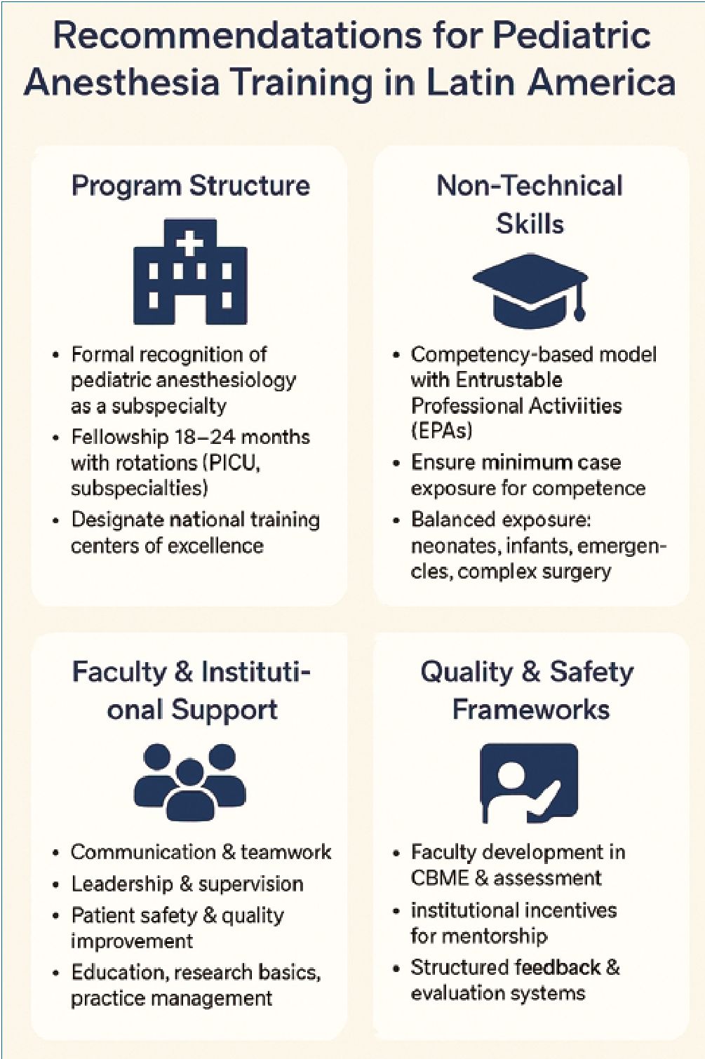 Figure 2. Main recommendations for Pediatric Anesthesia Training in Latin America.