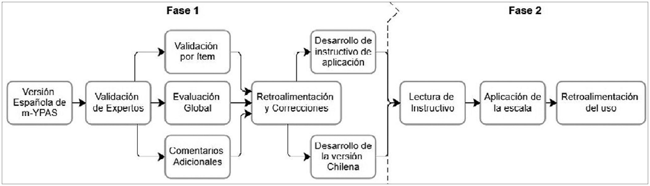 Figura 1. Proceso de adaptación transcultural de la escala m-YPAS española a chilena.
