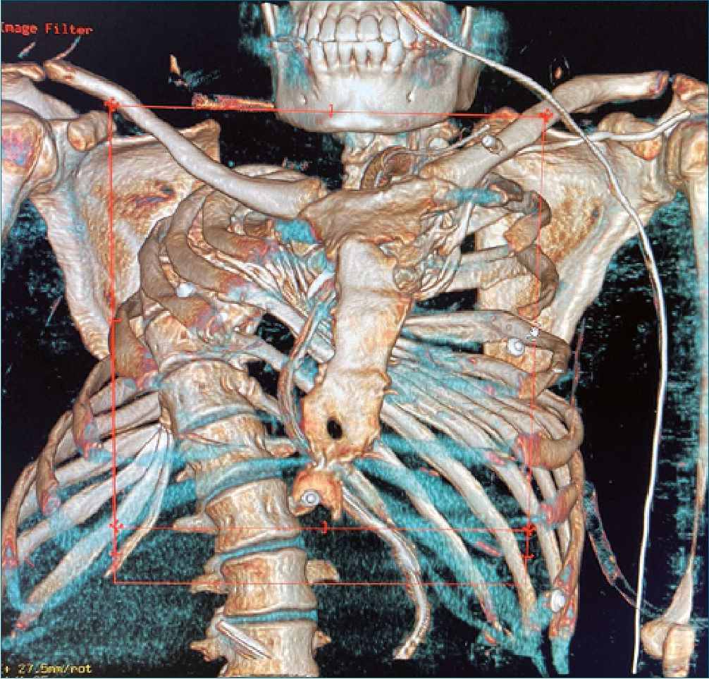 Figura 2. Reconstrucción de tomografía con presencia de escoliosis.