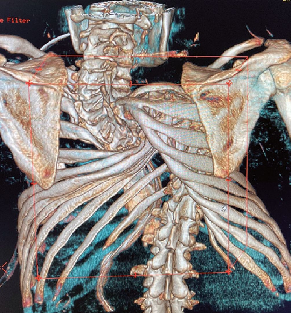 Figura 1. Reconstrucción de tomografía con presencia de escoliosis.