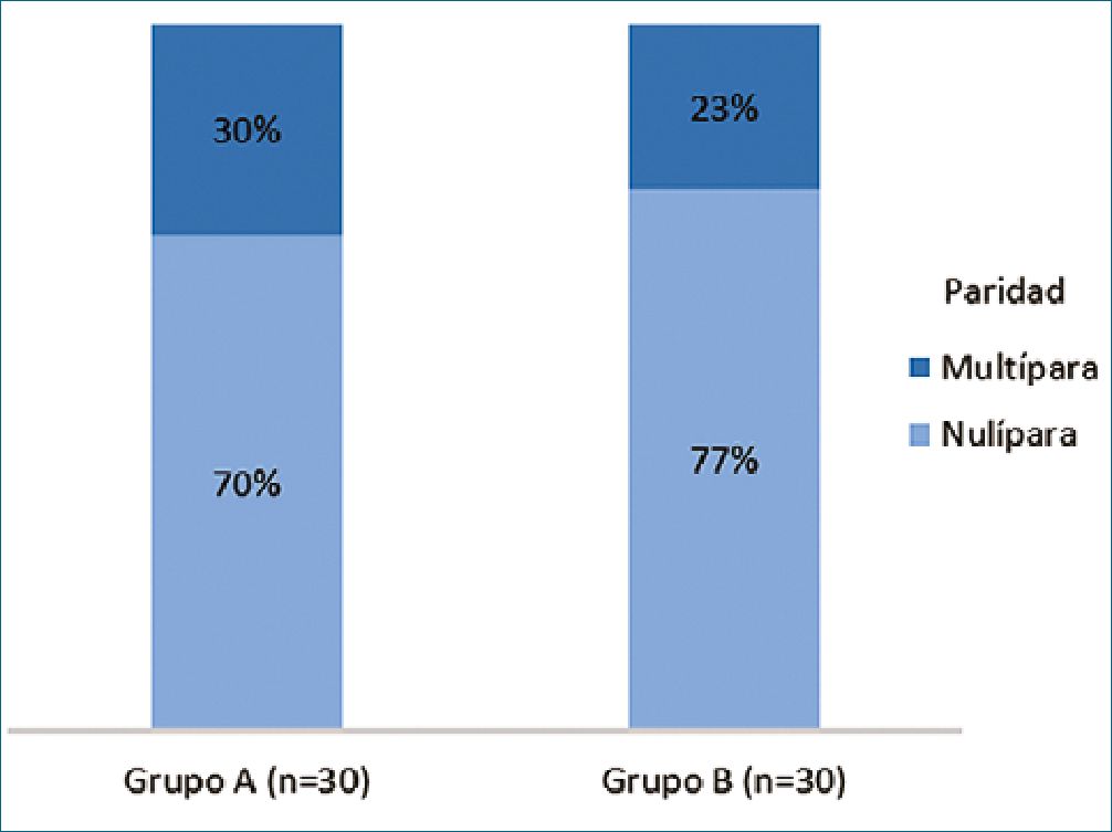 Figura 1. Paridad según grupo de pacientes (p = 0,559).