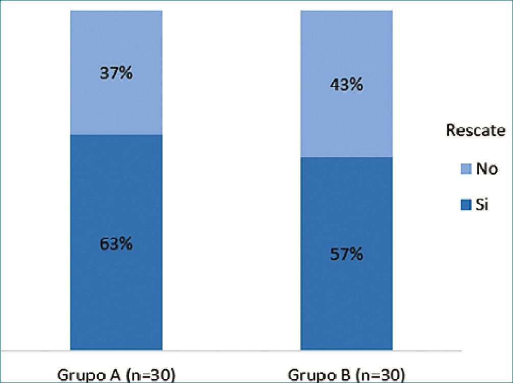 Figura 2. Rescates según grupo de pacientes (p = 0,092).