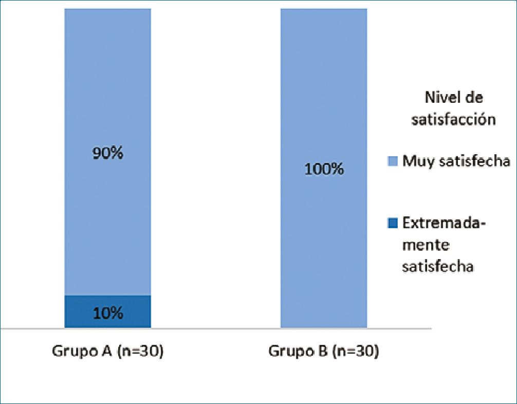 Figura 4. Nivel de satisfacción según grupo de pacientes (p = 0,076).