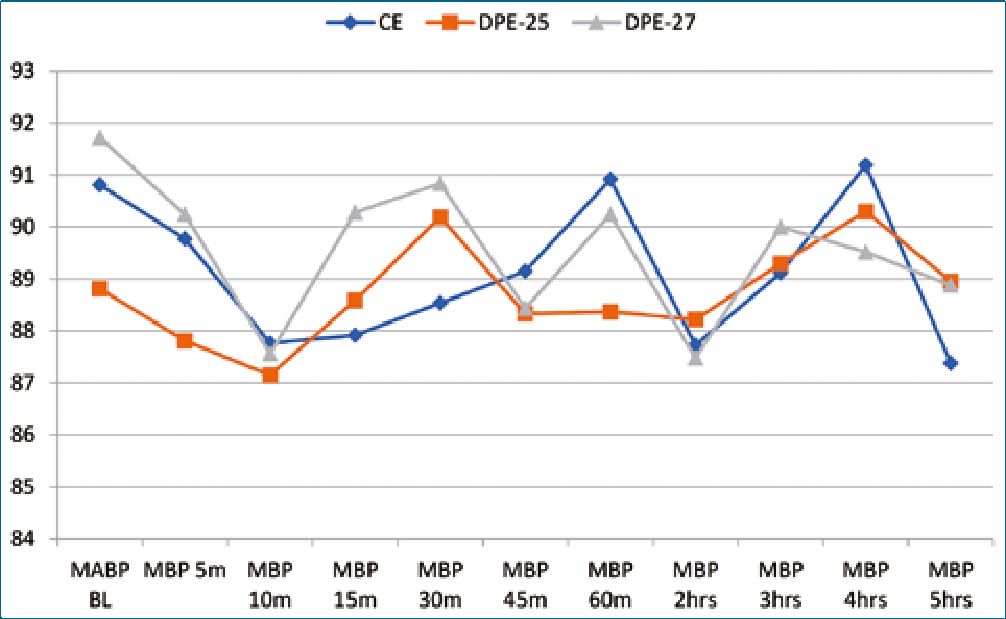 Figure 3. Mean arterial pressure (MBP) among the three groups.