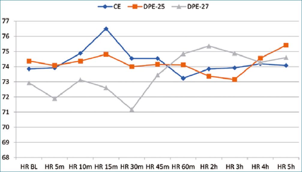 Figure 4. Heart rate (HR) among the three groups.