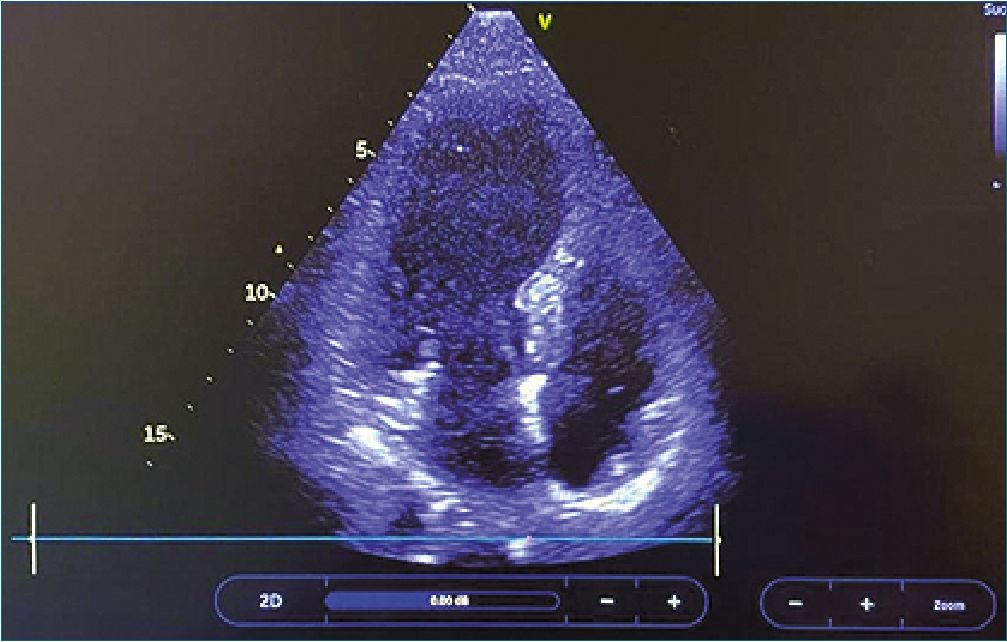 Figura 1. Hipoquinesia y dilatación vértice del ventrículo izquierdo.