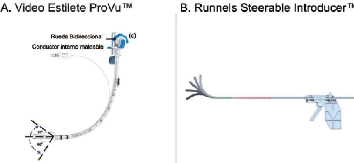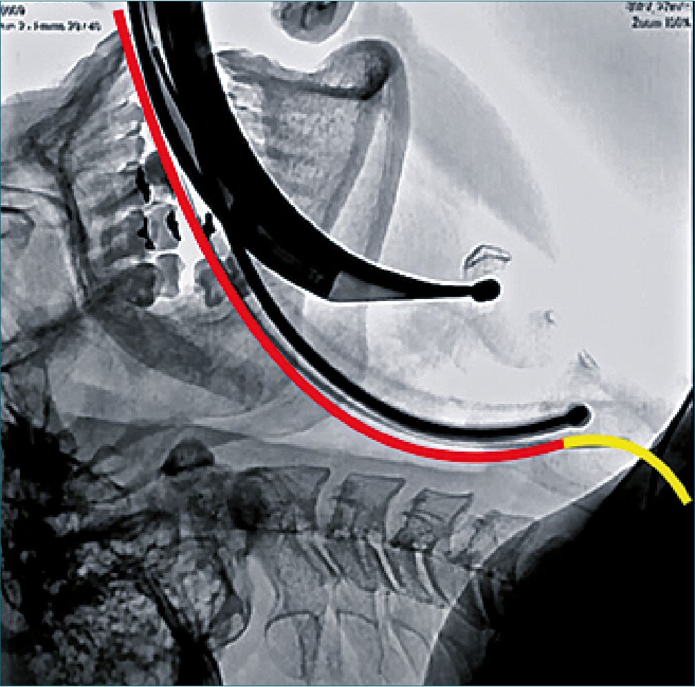 El diseño y el rendimiento de diversos dispositivos de manejo de la vía aérea han evolucionado de manera que, en la práctica, reflejan la teoría de las dos curvas. Dispositivos como las ópticas flexibles (fibro o videobroncoscopios), los videoestiletes maleables (por ejemplo, ProVU de Flexicare, VS de Karl Storz) y las buggies flexibles (como el Runnel Steerable Introducer de TTC) ofrecen la capacidad de modificar su curvatura y adaptar la trayectoria del dispositivo en el plano sagital, facilitando la transición entre ambas curvaturas. La ventaja de estos dispositivos radica en su adaptabilidad a la variabilidad de curvas presentada por el espectro de pacientes con distorsiones anatómicas, lo que es aún más relevante en aquellos que no pueden someterse a maniobras para optimizar la transición entre curvas (posición de olfateo – HELP), como es el caso de pacientes con inestabilidad cervical (Figura 3).