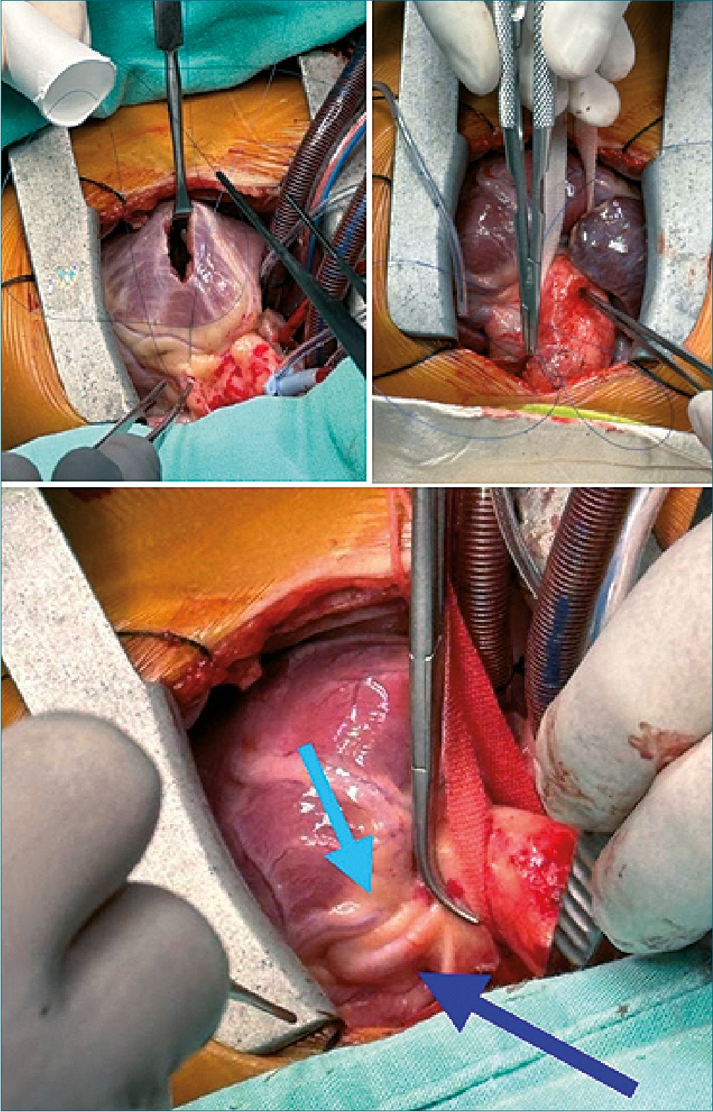 Figura 1. Imagen macroscópica durante procedimiento quirúrgico de rastelli donde se identifica doble coronaria descendente.